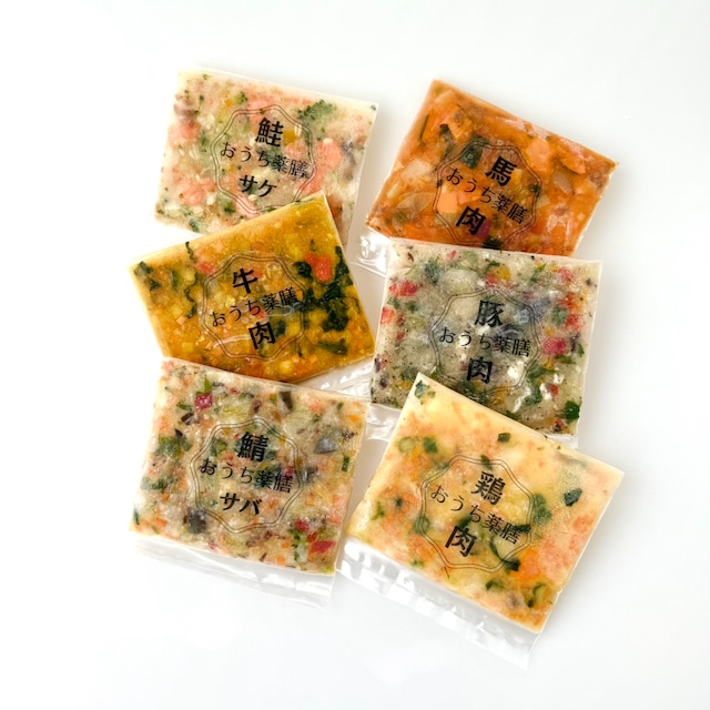 ■賞味期限は約1カ月半 トッピング、手作りごはんベースに ▶鶏とカボチャの豆乳煮 ●原材料:白菜・豆乳・鶏モモ・人参・かぼちゃ・じゃがいも・アスパラ・ 青梗菜・しめじ・無糖ヨーグルト・白きくらげ ●成分値:タンパク質3.5g、脂質2.3g、リン56mg、ナトリウム15mg、54kcal ▶豚と野菜の火鍋風 ●原材料:豚肉・白菜・水菜・パプリカ・もやし・大根・豆腐・えのき・ セロリ・きくらげ・舞茸・味噌・黒ゴマ・ごま油 ●成分値:タンパク質3.5g、脂質3.2g、リン50mg、ナトリウム38mg、50kcal ▶馬肉と根菜のトマト煮 ●原材料:トマト・大根・馬肉・人参・かぼちゃ・さつまいも・ズッキーニ・ キャベツ・ごぼう・いんげん・山芋・パセリ・椎茸 ●成分値:タンパク質3.1g、脂質0.5g、リン47mg、ナトリウム15mg、48kcal ▶牛肉の薬膳カレー ●原材料:牛肉・人参・じゃがいも・トマト・なす・ほうれん草・ かぼちゃ・大豆・りんご・マッシュルーム・ココナッツミルク・ くこのみ・切り干し大根・本くず粉・ウコン・クミン ●成分値:タンパク質3.9g、脂質2.2g、リン52mg、ナトリウム17mg、57kcal ▶サバと野菜と雑穀米 ●原材料:人参・ごはん・サバ・キャベツ・ブロッコリー・ パプリカ・なす・ズッキーニ・ピーマン・レタス・ 雑穀(もち麦、胚芽押し麦、はだか麦、丸麦、もち黒米、もち玄米・発芽玄米、うるち玄米、 もち赤米、ハトムギ、もちあわ、もちきび、もち緑米、ソルガム、ひえ、とうもろこし)・ 鰹節・椎茸・きくらげ ●成分値:タンパク質4.0g、脂質3.2g、リン64mg、ナトリウム18mg、83kcal ▶鮭とあさりの本くず煮 ●原材料:豆乳・じゃがいも・ブロッコリー・鮭・人参・栗・ しめじ・舞茸・パプリカ・セロリ・オートミール・あさり・松のみ・本くず粉 ●成分値:タンパク質5.1g、脂質3.7g、リン83mg、ナトリウム23mg、81kcal ▶鱈とあさりの野菜スープ ●原材料:じゃがいも・鱈・キャベツ・トマト・人参・ブロッコリー・パプリカ・ しめじ・カリフラワー・セロリ・あさり・パセリ・オリーブオイル・味噌 ●成分値:36kcal ▼内容量▼ 100g ▼使用方法▼ 一般食ですので、トッピングとしてお使いください。 解凍してお使いください。 開封後はお早めに使い切ってください。 ▼冷凍でのお届けとなります▼ 日時指定がある場合は、備考欄にお書きください。 ご注文日から2日以降のご指定が可能です。