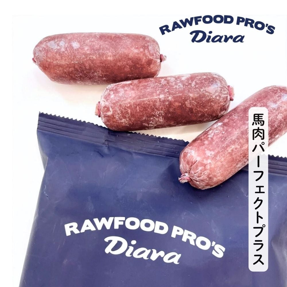 全体食の考え方を取り入れ、馬肉のミンチに新鮮な内臓類と生骨のミンチをバランスよくミックスした「馬肉パーフェクト」に食物繊維となる海藻粉、タンパク質分解を促す醗酵フルーツや野菜などをプラス。体作りに大切な栄養成分であるアミノ酸バランスに優れ、カルシウムやビタミン、ミネラルも豊富な究極のローフードです。