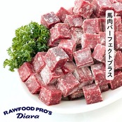 全体食の考え方を取り入れ、馬肉のミンチに新鮮な内臓類と生骨のミンチをバランスよくミックスした「馬肉パーフェクト」に食物繊維となる海藻粉、タンパク質分解を促す醗酵フルーツや野菜などをプラス。体作りに大切な栄養成分であるアミノ酸バランスに優れ、カルシウムやビタミン、ミネラルも豊富な究極のローフードです。